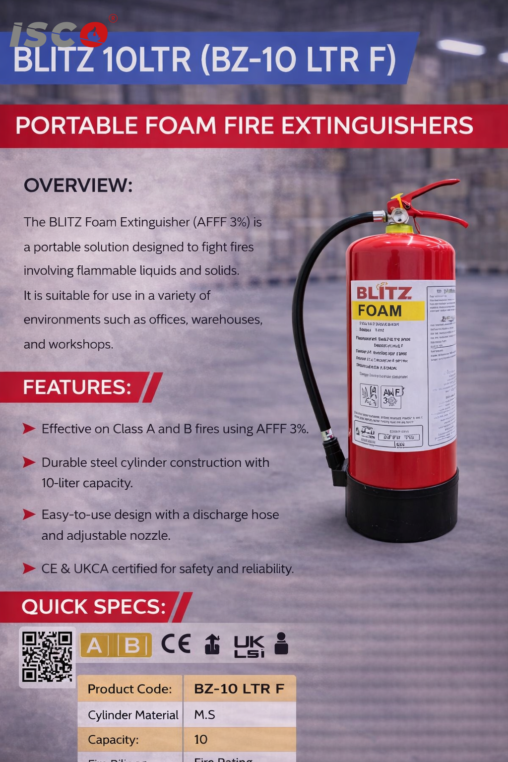 - كفاءة إطفاء مضاعفة: توفر كمية رغوة أكبر بنسبة 40% تقريباً مقارنة بموديل 6 لتر، مما يجعلها مثالية للورش والمخازن الكبرى.