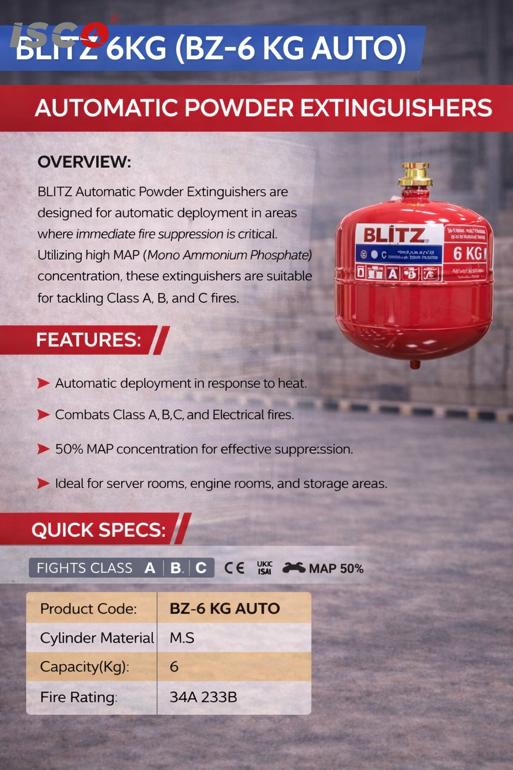 - نوع مادة الإطفاء: بودرة كيميائية جافة (ABC Dry Powder) بتركيز 40% MAP.