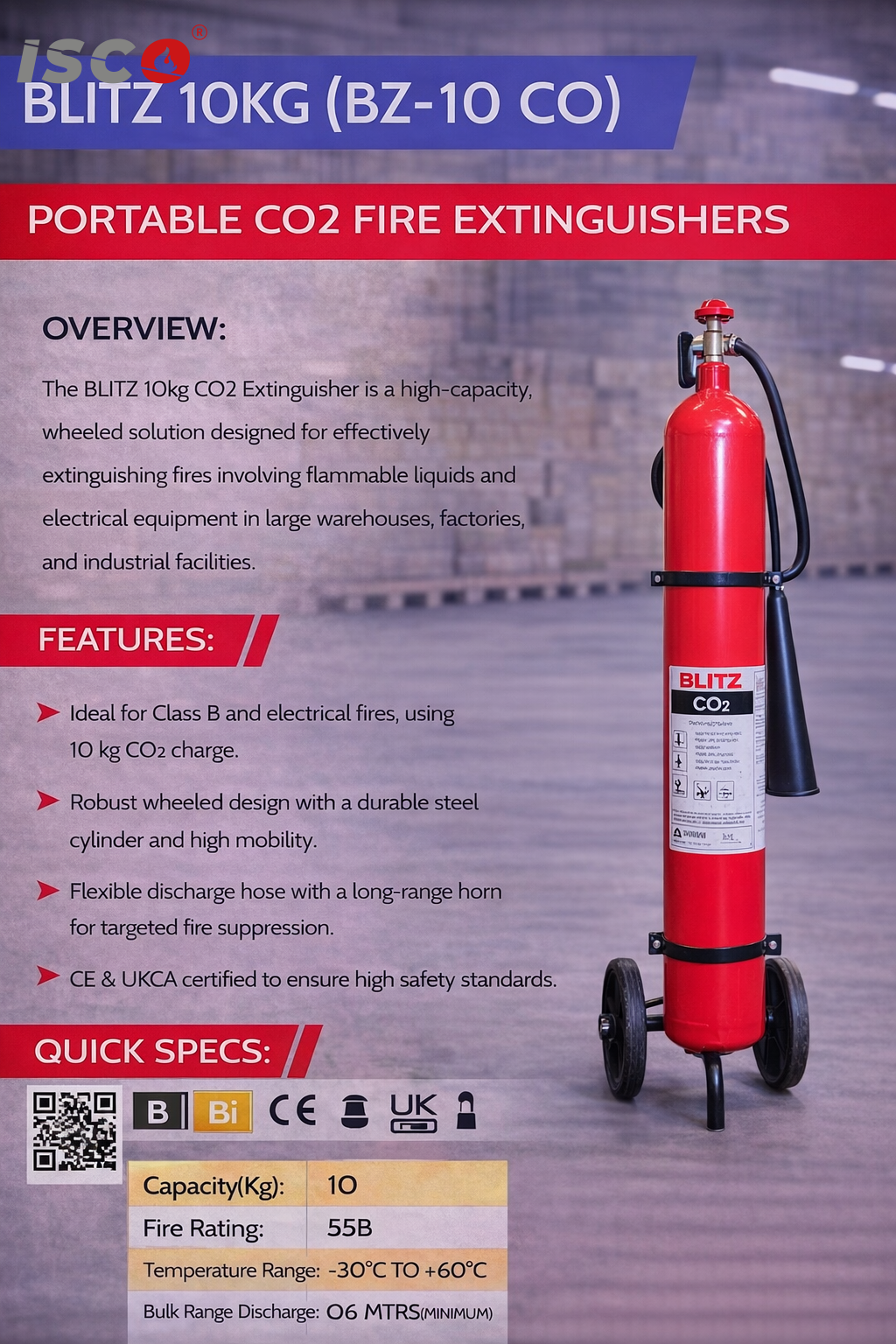 - قدرة إخماد عالية: السعة الكبيرة (10 كجم) تجعلها مناسبة للسيطرة على الحرائق التي قد لا تستطيع الطفايات الصغيرة (2 أو 5 كجم) إخمادها.