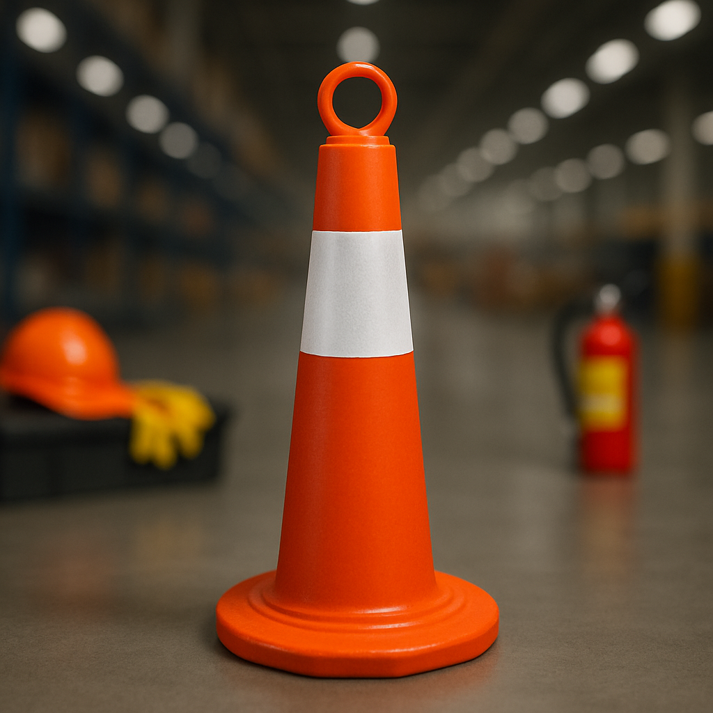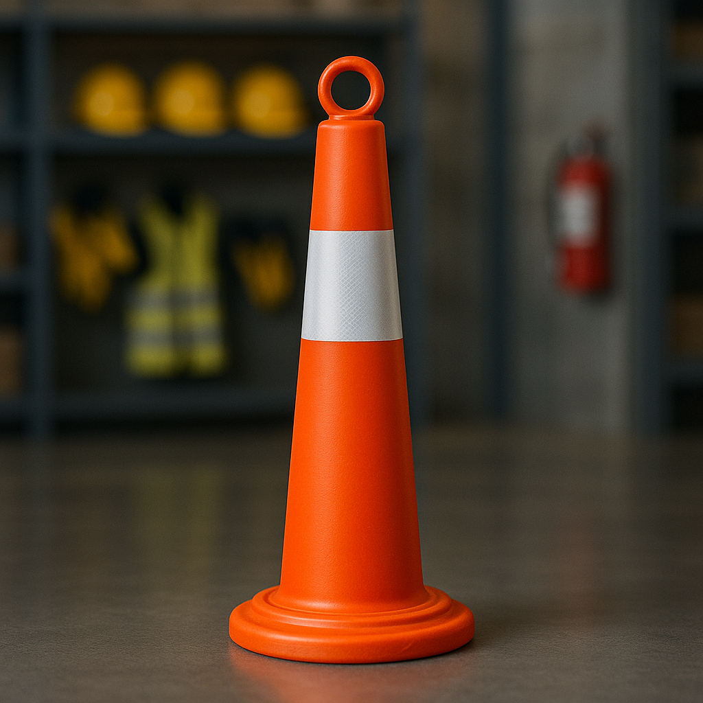 مخروط عاكس ( قمع مروري ) مقاس 1 متر سهل الرؤية خلال النهاروالليل بواسطة الشريط العاكس الملصق على القمع مصنوع من مادة ( بي في سي ) بلاستيك يستخدم على الطرق للتحذير أثناء أعمال الصيانة على الطرق و التنبية وإغلاق الأماكن و مواقف السيارات ومتوفر بعدة مقاسات.