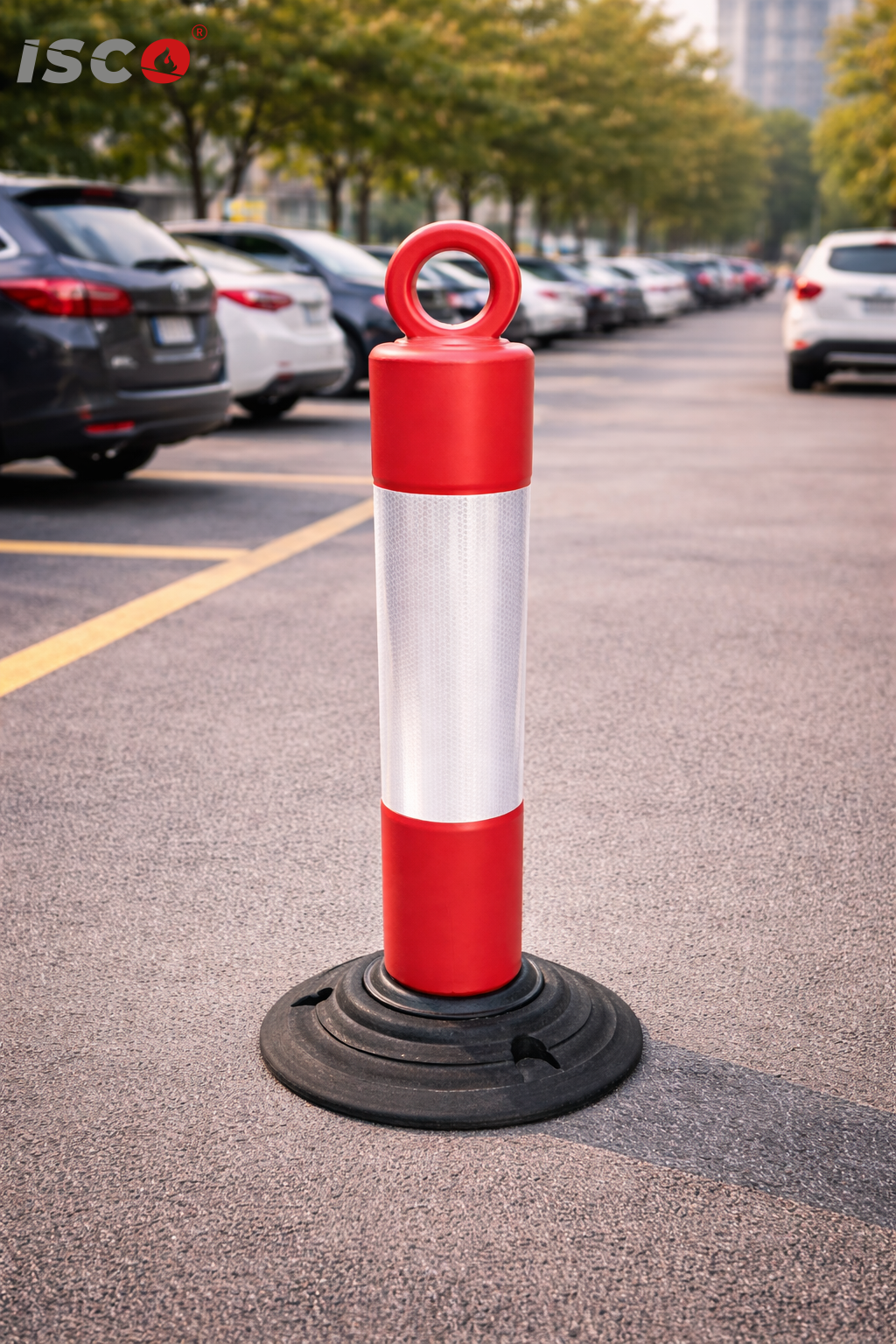 عمود حاجز مروري مرن (Flexible Bollard)، وهو أداة مخصصة لتنظيم المسارات وضمان السلامة المرورية في مواقف السيارات والطرق.
