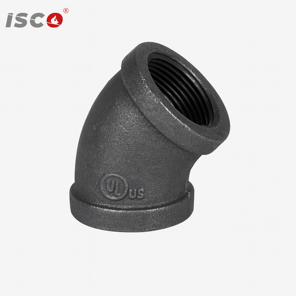 وصلة حديد أسود ملولبة من نوع كوع 45 درجة حديد ملولب، مقاس 1″ بوصة، كلاس 150، معتمدة UL/FM. الوصف الفني: [101010203] 1” B GOURD BRAND BMI ELBOW 45D CL150 BS UL/FM