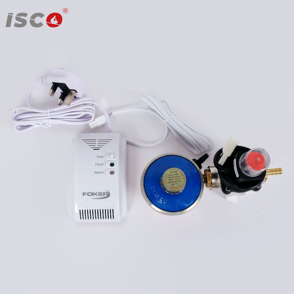 - صمام الإغلاق الأوتوماتيكي (Automatic Shut-off Valve): صمام كهربائي أو يعمل بمحرك يتم تركيبه على خط إمداد الغاز الرئيسي أو مباشرة على أسطوانة الغاز. عند تلقي إشارة من الكاشف، يقوم الصمام تلقائيًا بقطع تدفق الغاز لمنع المزيد من التسرب.