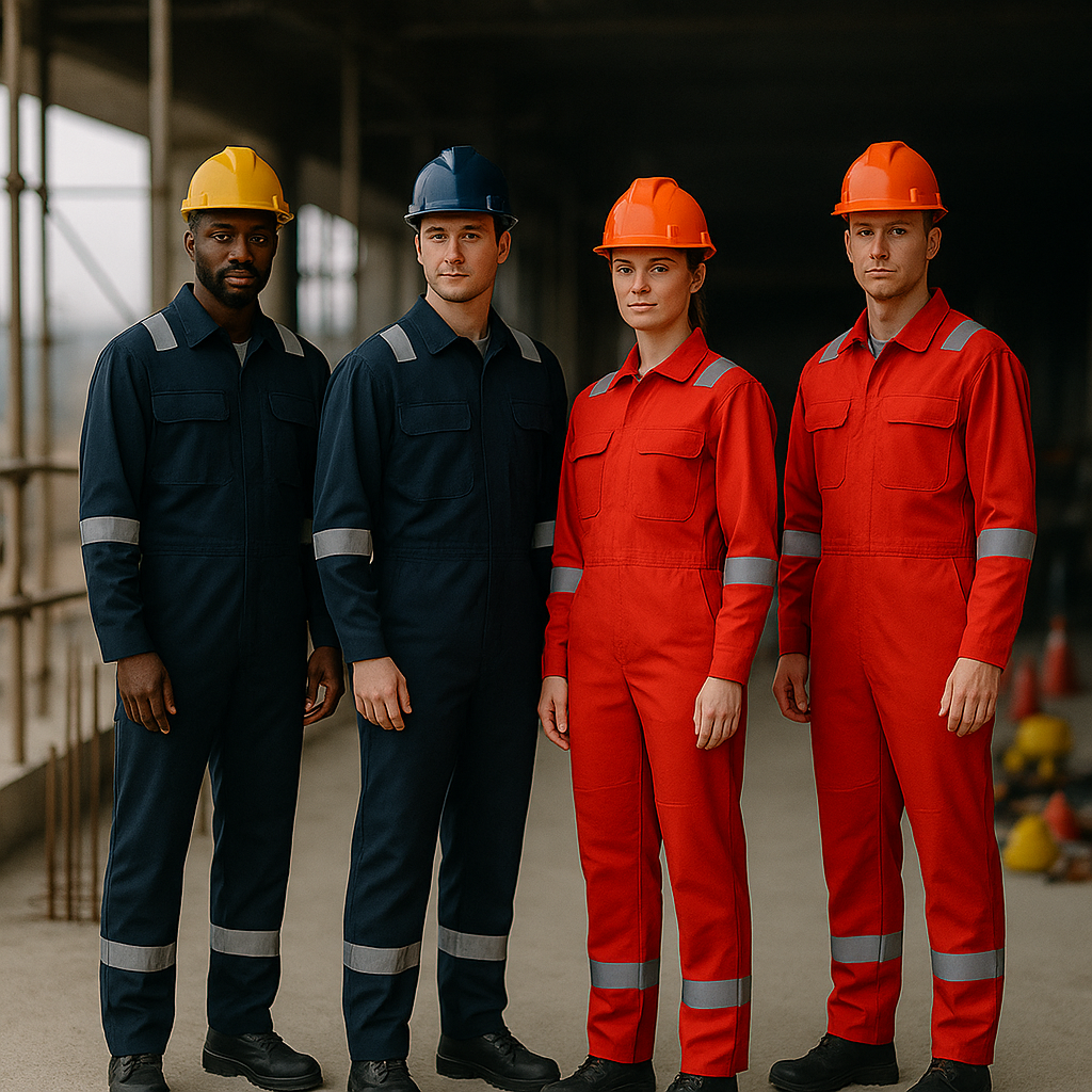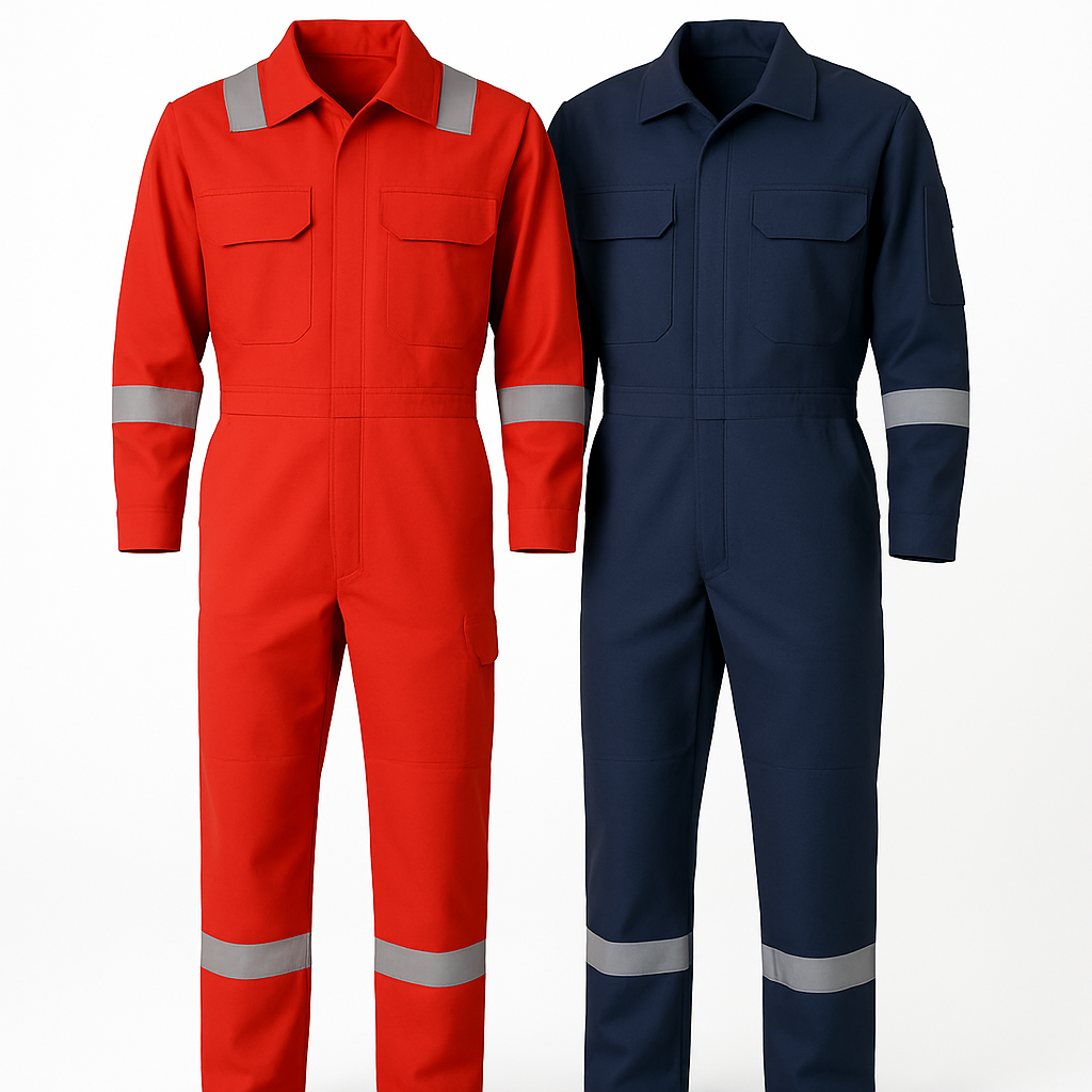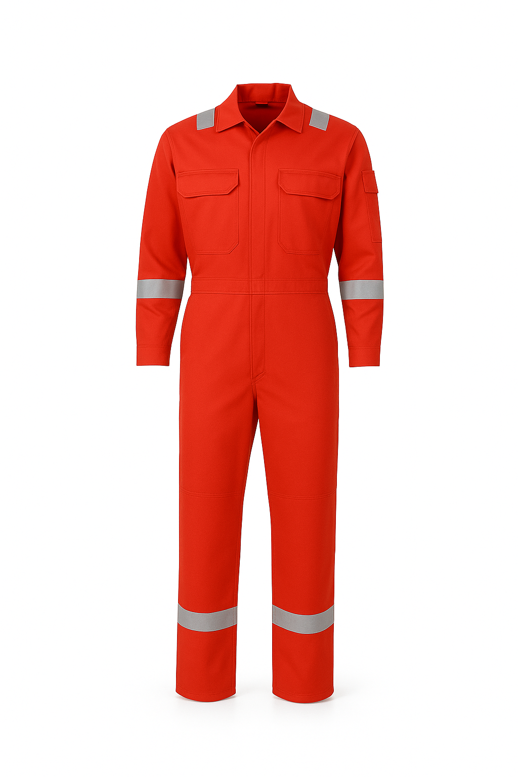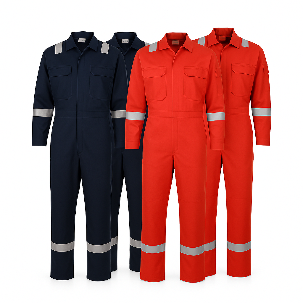 بدل “أرامكو” ذات القطعتين مع العاكس المتنوعة هي ملابس عمل مصممة للحماية من الحريق والحرارة العالية، وغالبًا ما تكون مصنوعة من قماش القطن المقاوم للحريق مع شرائط عاكسة لزيادة الرؤية، وتُصنع من قطعتين منفصلتين لسهولة الحركة. هذه البدلات متينة وعملية ومناسبة للعمل الشاق، وتأتي بألوان ثابتة، ويمكن طباعة شعارات عليها.
