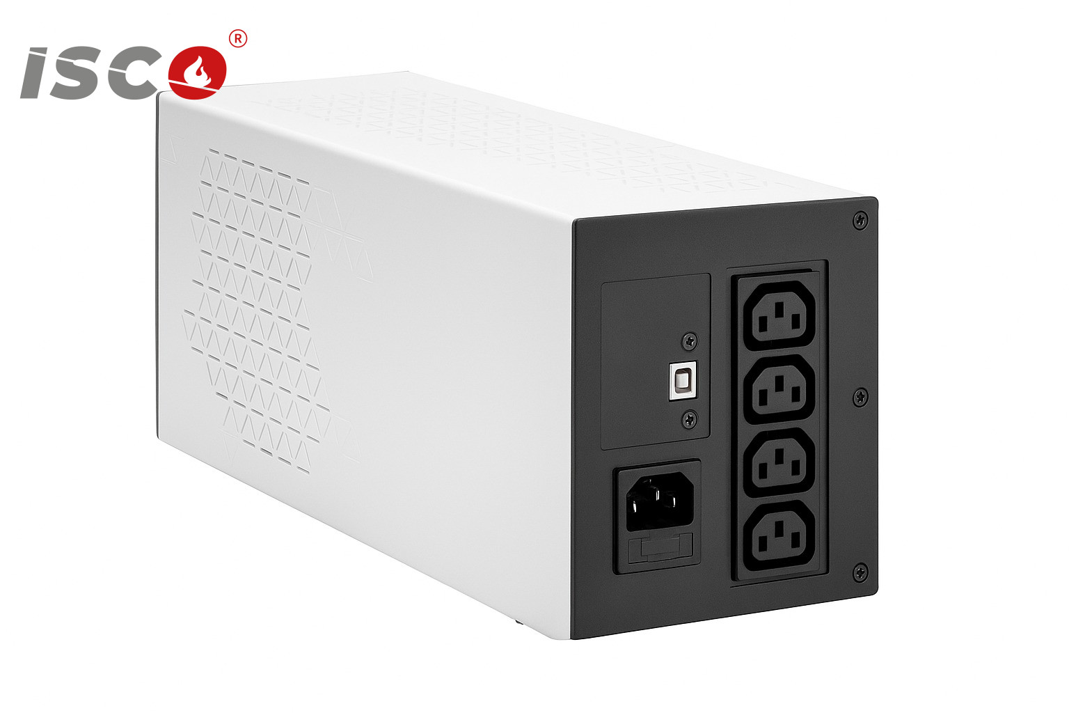 المخارج: مزود بـ 4 مقابس من نوع IEC 60320 C13 لتوصيل الأجهزة الإلكترونية الأساسية مثل أجهزة الكمبيوتر، أجهزة التوجيه (routers)، و أنظمة المراقبة (CCTV).