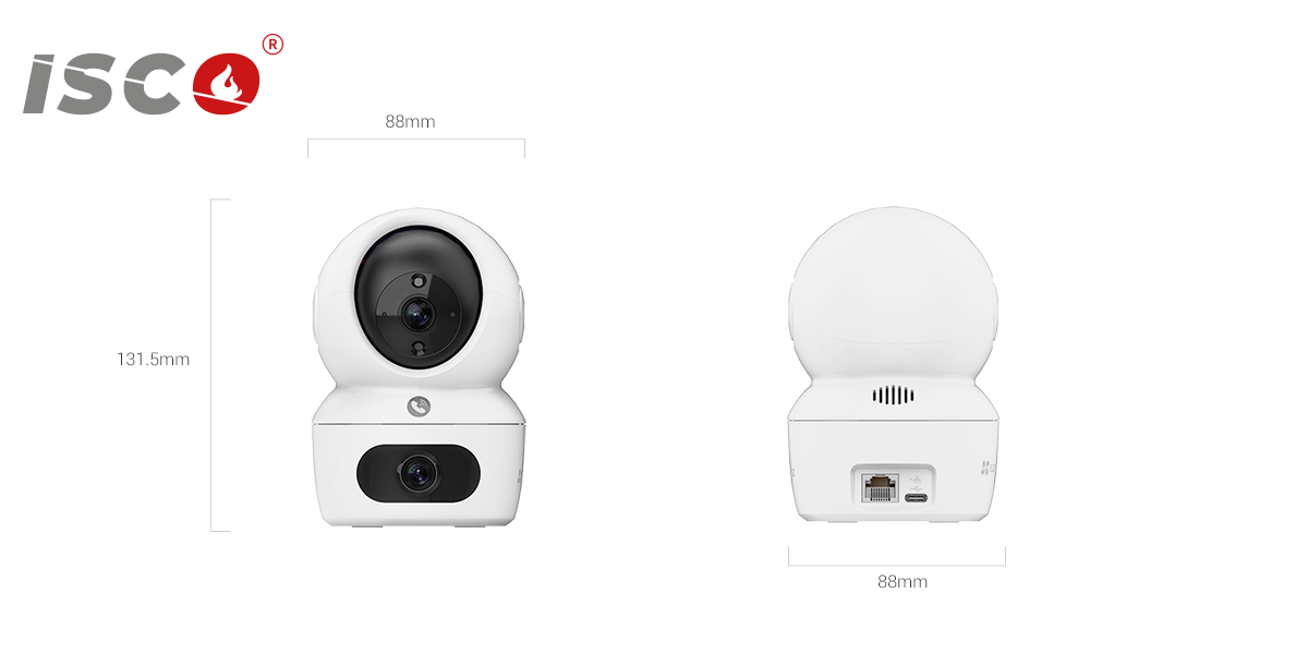 - عدستان: عدسة ثابتة مقاس 2.8 ملم توفر رؤية أفقية واسعة بزاوية 92 درجة، بينما توفر العدسة المتحركة مقاس 6 ملم مراقبة أكثر تفصيلاً وتركيزًا مع ميزات التتبع.